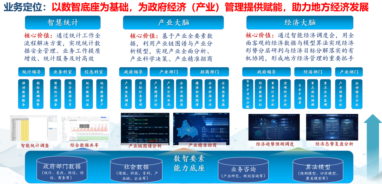 為充分發(fā)揮數(shù)字化在政府履行經(jīng)濟(jì)調(diào)節(jié)的重要支撐作用,強(qiáng)化經(jīng)濟(jì)運(yùn)行大數(shù)據(jù)監(jiān)測(cè)分析,提升經(jīng)濟(jì)調(diào)節(jié)能力,中科信息公司以“數(shù)據(jù)智能”驅(qū)動(dòng)政府產(chǎn)業(yè)與經(jīng)濟(jì)治理的數(shù)字化改革,基于自身在產(chǎn)業(yè)經(jīng)濟(jì)領(lǐng)域的行業(yè)經(jīng)驗(yàn)、技術(shù)積累及數(shù)據(jù)沉淀,構(gòu)建宏觀“看形勢(shì)”“測(cè)趨勢(shì)”,中觀“析堵點(diǎn)”,微觀“治問(wèn)題”三層應(yīng)用,打造“經(jīng)濟(jì)大腦”、“產(chǎn)業(yè)大腦”、“智慧統(tǒng)計(jì)”全鏈條產(chǎn)品解決方案,成為地方政府做好經(jīng)濟(jì)治理、產(chǎn)業(yè)發(fā)展的有力抓手