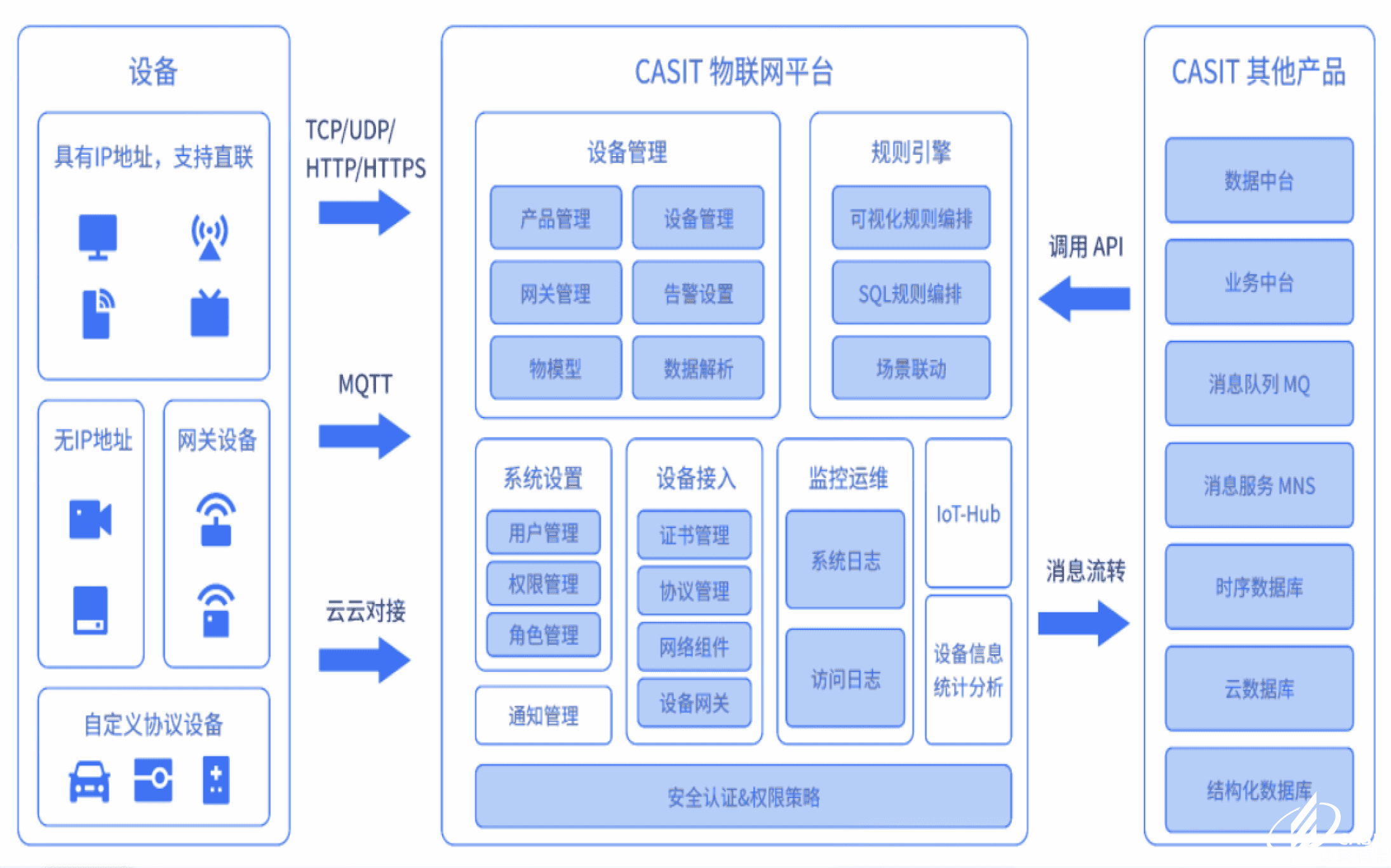 極云物聯(lián)網(wǎng)中臺是一個企業(yè)級物聯(lián)網(wǎng)基礎(chǔ)開發(fā)平臺,可實(shí)現(xiàn)物聯(lián)網(wǎng)業(yè)務(wù)開發(fā)的眾多基礎(chǔ)功能,幫助企業(yè)快速建立物聯(lián)網(wǎng)相關(guān)業(yè)務(wù)系統(tǒng)。平臺集成了設(shè)備管理、數(shù)據(jù)安全通信和消息訂閱等能力,向下支持海量設(shè)備連接,采集設(shè)備數(shù)據(jù)上云;向上提供云端API,服務(wù)端可通過調(diào)用云端 API 將指令下發(fā)至設(shè)備端,實(shí)現(xiàn)遠(yuǎn)程控制;除此以外,平臺還提供規(guī)則引擎等功能。其中,設(shè)備接入與管理支持億級設(shè)備與云端建立安全可靠的雙向連接;可視化規(guī)則引擎提供設(shè)備與云上各產(chǎn)品之間的數(shù)據(jù)流轉(zhuǎn)。從而幫助用戶快速搭建垂直物聯(lián)網(wǎng)架構(gòu),高效實(shí)現(xiàn)場景化智能應(yīng)用。