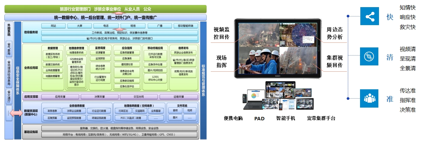 為解決文旅數(shù)據(jù)融合難、業(yè)態(tài)多監(jiān)管難、資訊發(fā)布渠道雜亂、游客體驗(yàn)差等問(wèn)題,中科信息以Al、大數(shù)據(jù)、物聯(lián)網(wǎng)等基礎(chǔ)產(chǎn)品為支撐,以應(yīng)用場(chǎng)景為抓手,聚焦文旅融合創(chuàng)新,為政府、景區(qū)、文博場(chǎng)所等提供全流程服務(wù)和管理的解決方案,覆蓋基礎(chǔ)設(shè)施建設(shè)、文旅大數(shù)據(jù)、智慧服務(wù)、智慧管理、智慧運(yùn)營(yíng)等應(yīng)用場(chǎng)景,實(shí)現(xiàn)管理智能化、服務(wù)一機(jī)化、營(yíng)銷深入化,從而促進(jìn)文旅融合發(fā)展,全面支撐文旅監(jiān)管決策,提高旅游公共服務(wù)質(zhì)量。